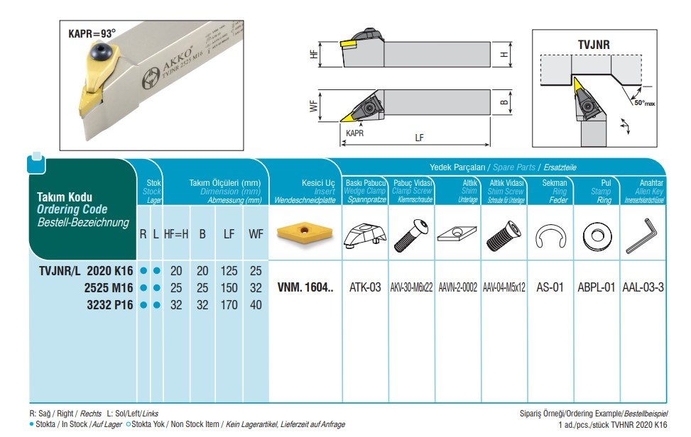 Držák je kompatibilní s ISO výměnnými břitovými destičkami typu VNMG. Pro přechod na nákup výměnných břitových destiček použijte níže související produkty.Níže ke stažení katalogový list ve formátu PDF.Přiložené obrázky jsou ilustrační a náleží pravořeznému provedení držáku.… Více