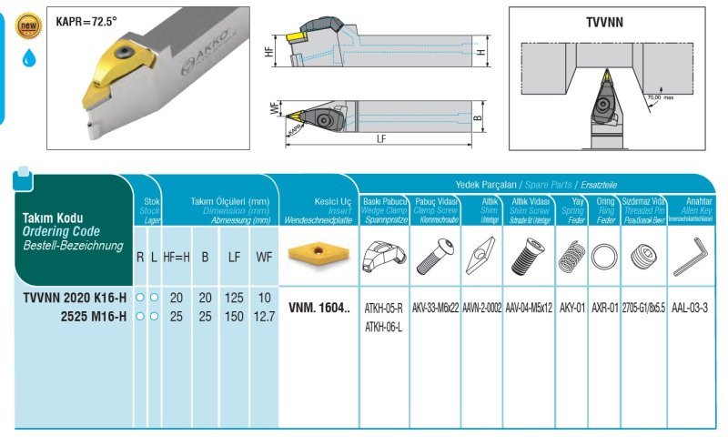 Soustružnický držák VBD TVVNN 2020 K16-H ( s vnitřním chlazením )