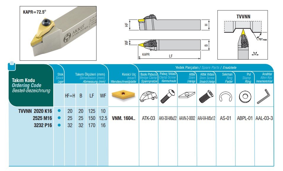 Držák je kompatibilní s ISO výměnnými břitovými destičkami typu VNMG. Pro přechod na nákup výměnných břitových destiček použijte níže související produkty.Níže ke stažení katalogový list ve formátu PDF.Přiložené obrázky jsou ilustrační a náleží pravořeznému provedení držáku.starší… Více