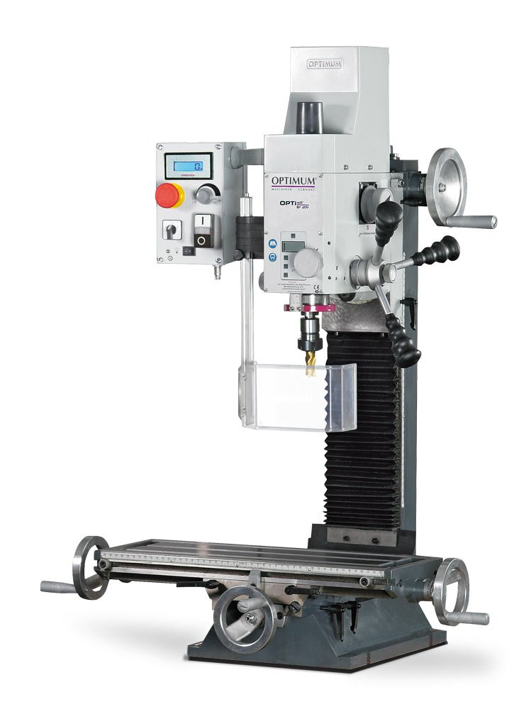 Stabilní vrtačko-frézka pro velmi přesnou, rychlou a bezpečnou práci. S elektronicky plynule regulovatelnými otáčkami vřetene a digitálním odečítáním zdvihu pinoly.