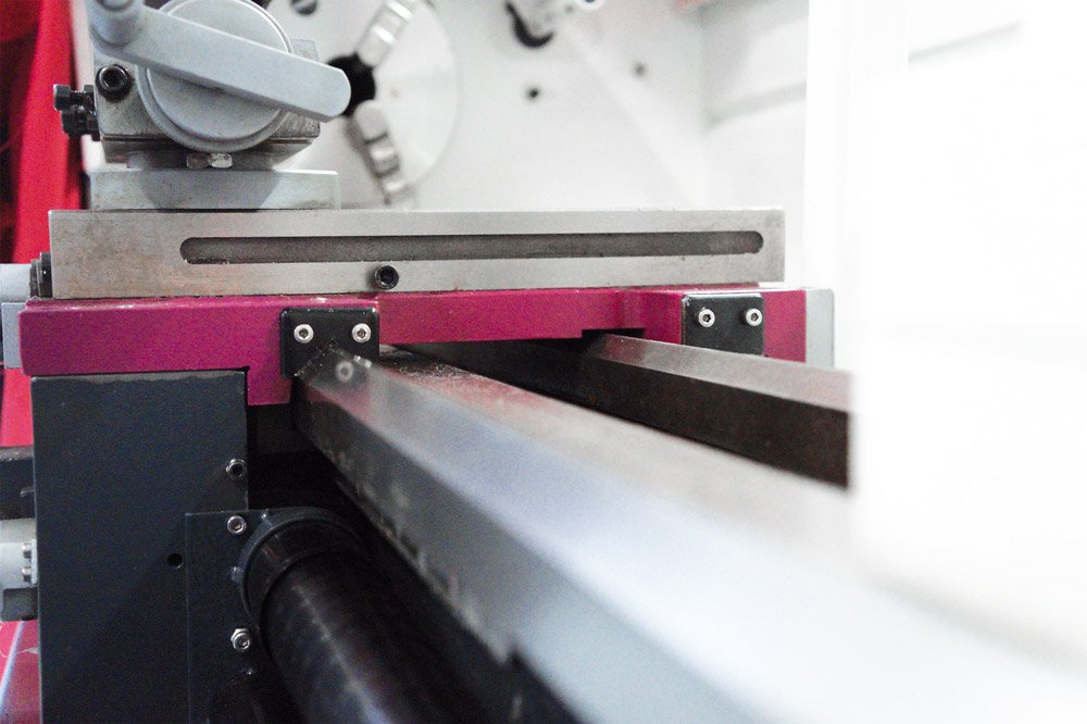 - Silně žebrované prizmatické lože ze šedé litiny, indukčně kalené a přesně broušené