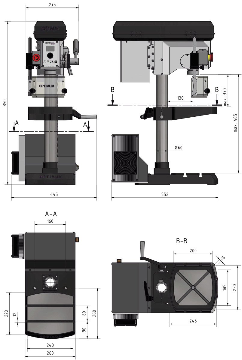 | Max. vzdálenost vřetene a základny | 485 mm |