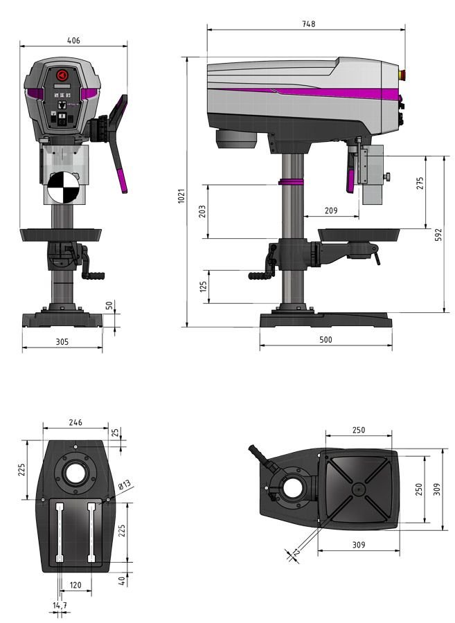 | Max. vzdálenost vřetene a základny | 592 mm |