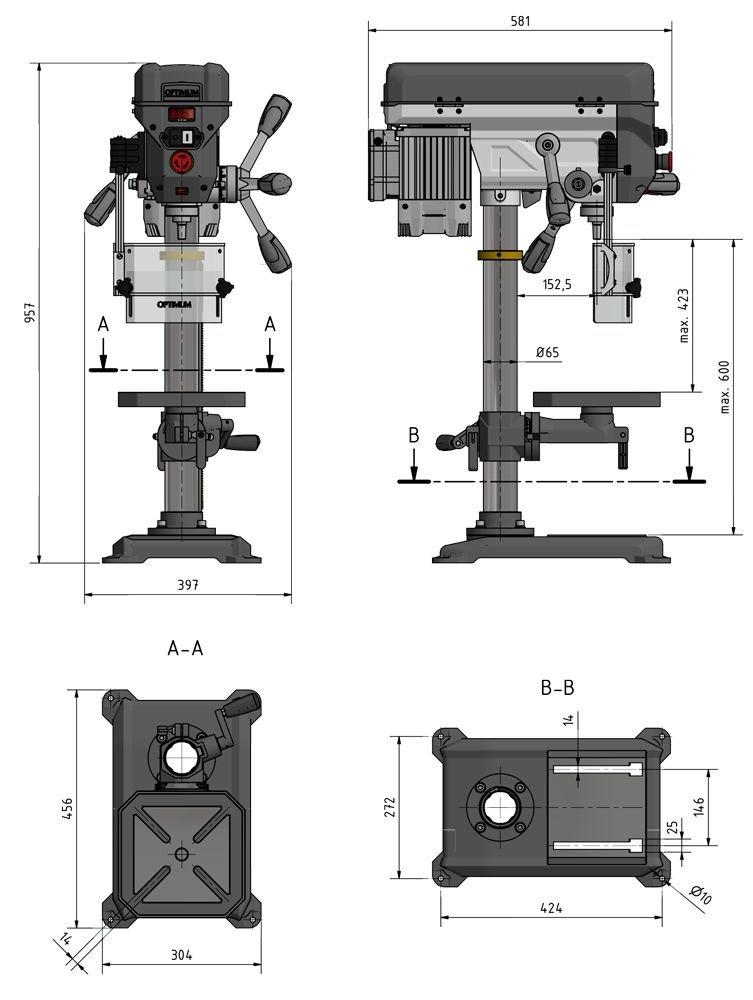 | Max. vzdálenost vřetene a základny | 599 mm |