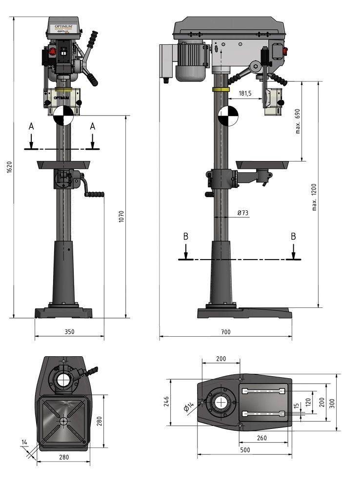 | Max. vzdálenost vřetene a základny | 1200 mm |