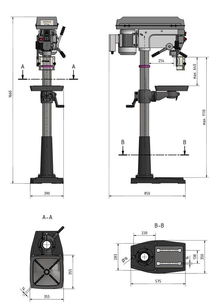 | Max. vzdálenost vřetene a základny | 1170 mm |