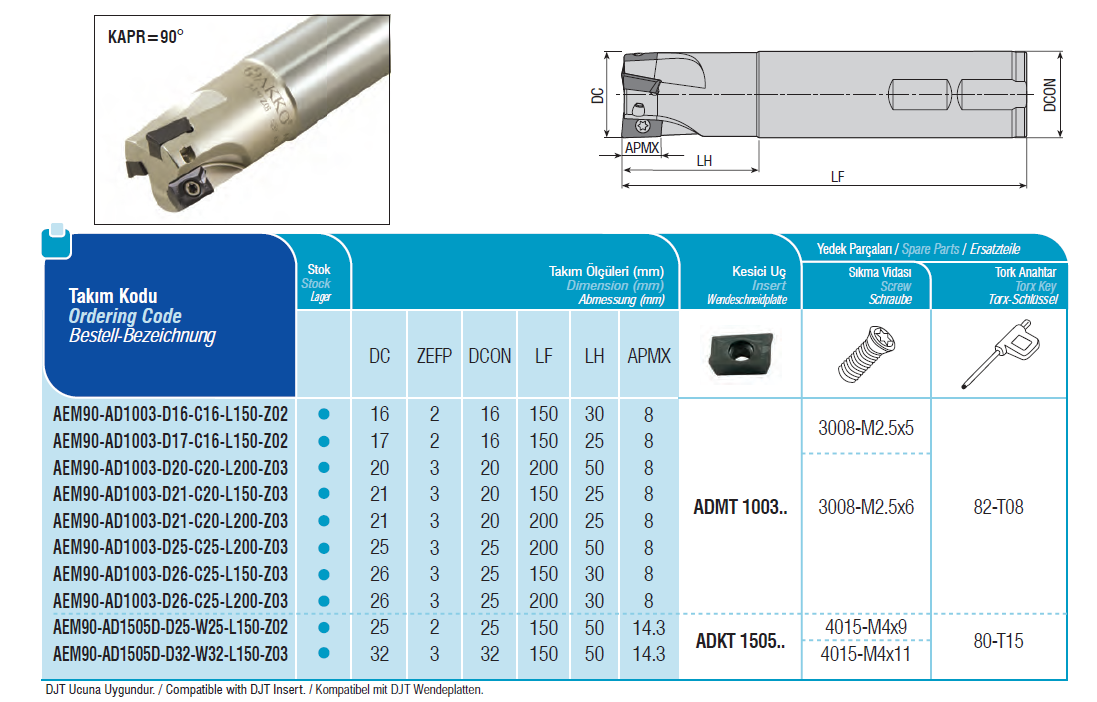 Stopková fréza čelní AEM90-AD1003-D17-C16-L150-Z02