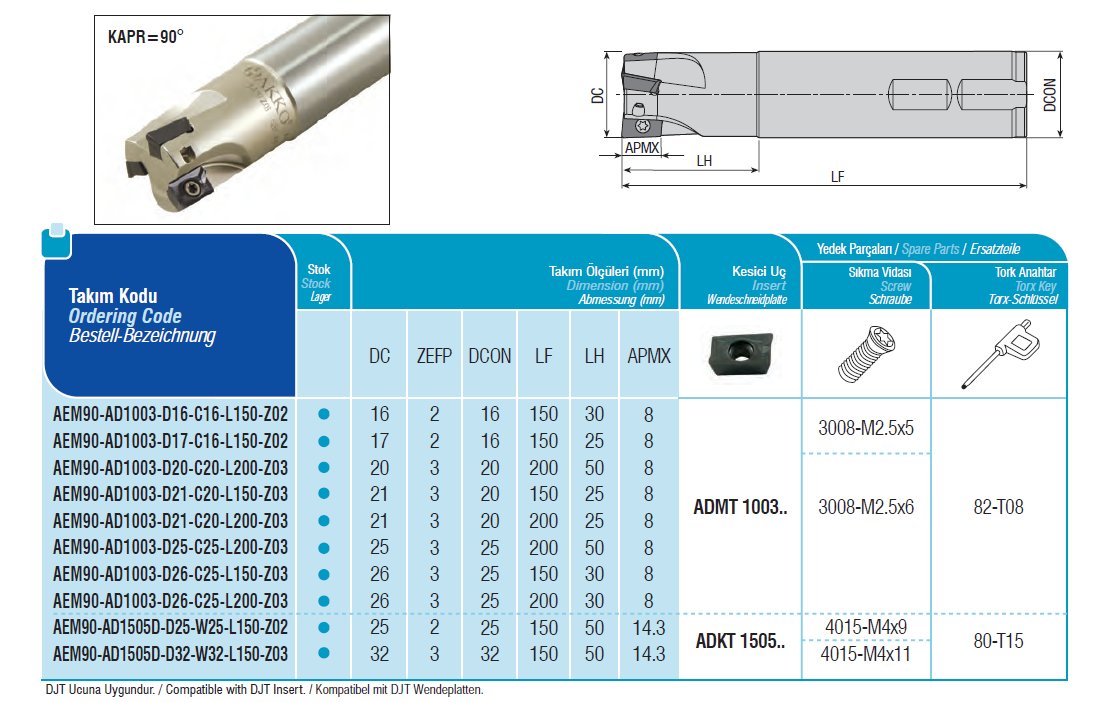 Stopková fréza čelní AEM90-AD1003-D20-C20-L200-Z03