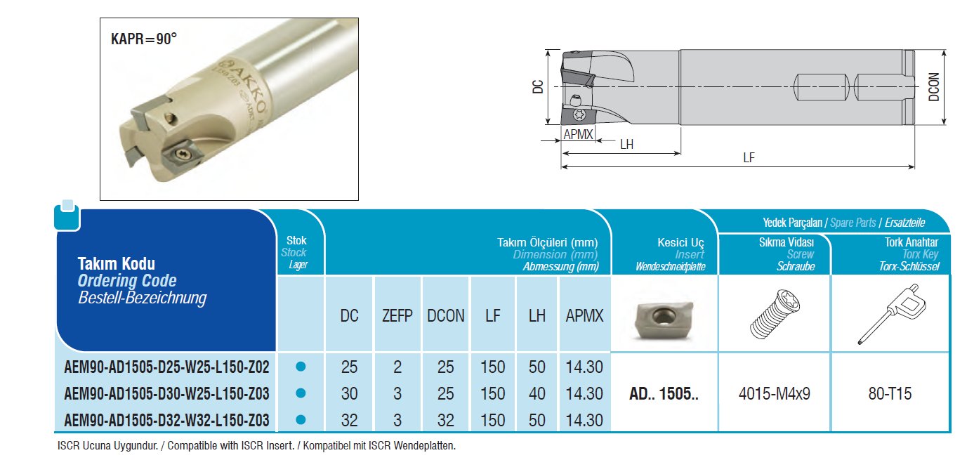 Stopková fréza čelní AEM90-AD1505-D32-W32-L150-Z03
