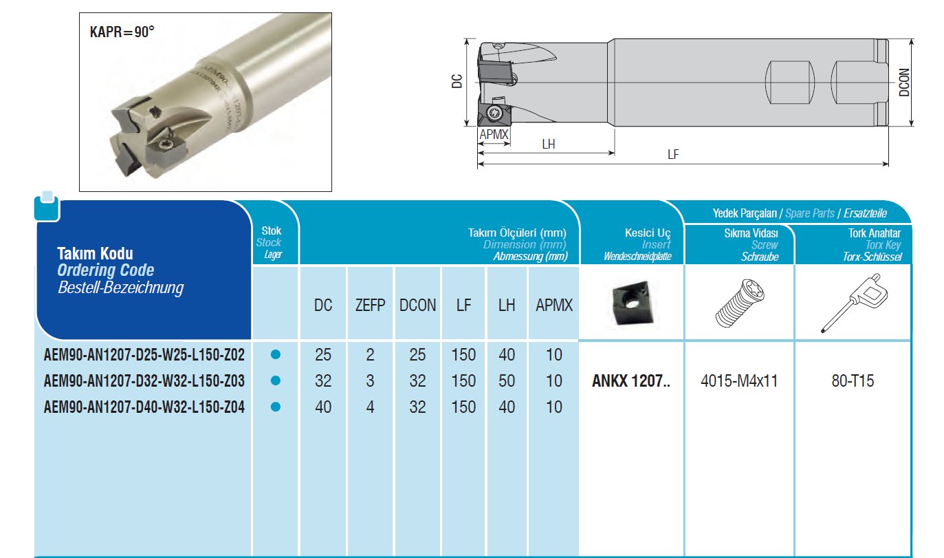 Stopková fréza čelní AEM90-AN1207-D25-W25-L150-Z02