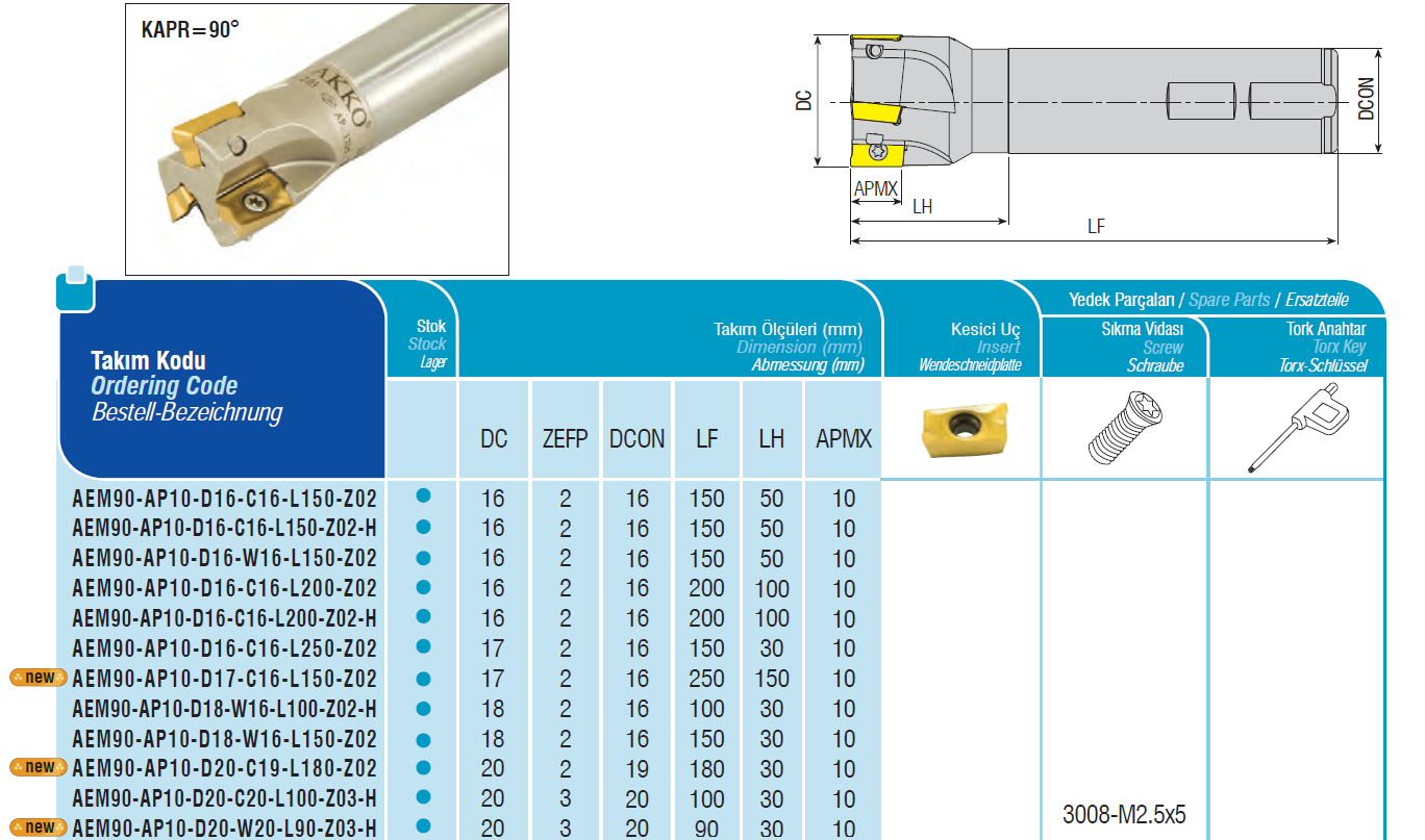 Stopková fréza čelní AEM90-AP10-D20-W20-L90-Z03-H