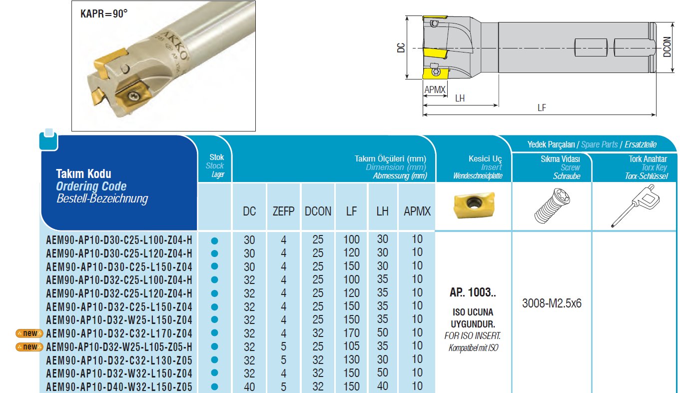 Stopková fréza čelní AEM90-AP10-D32-W25-L105-Z05-H