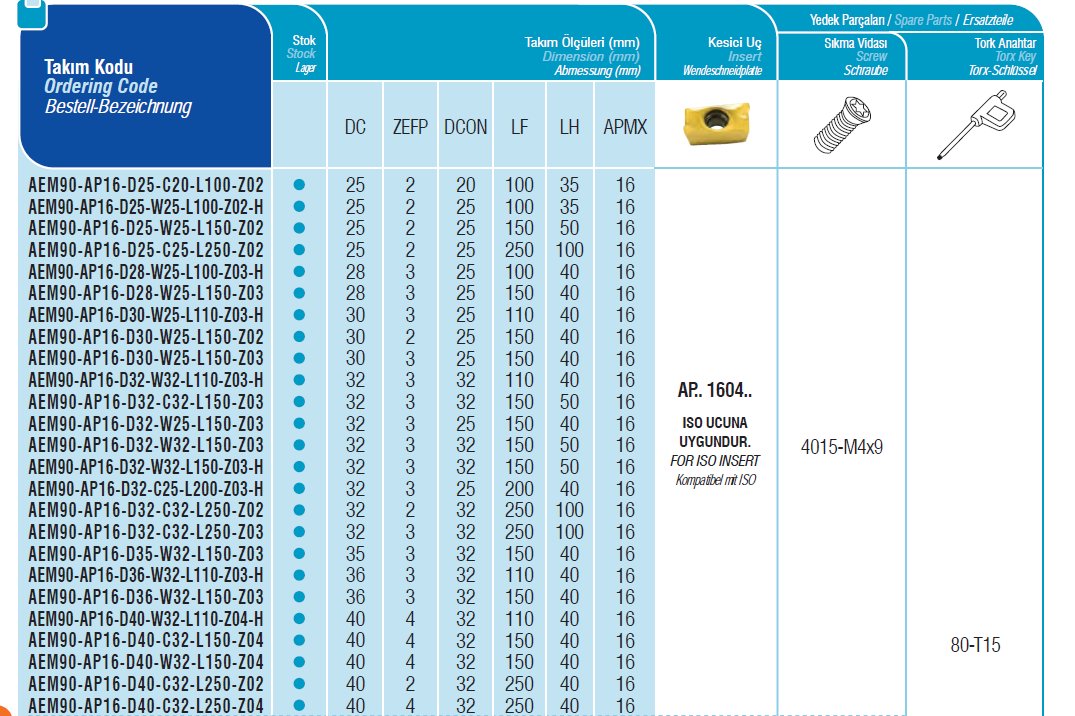 Stopková fréza čelní AEM90-AP16-D28-W25-L150-Z03