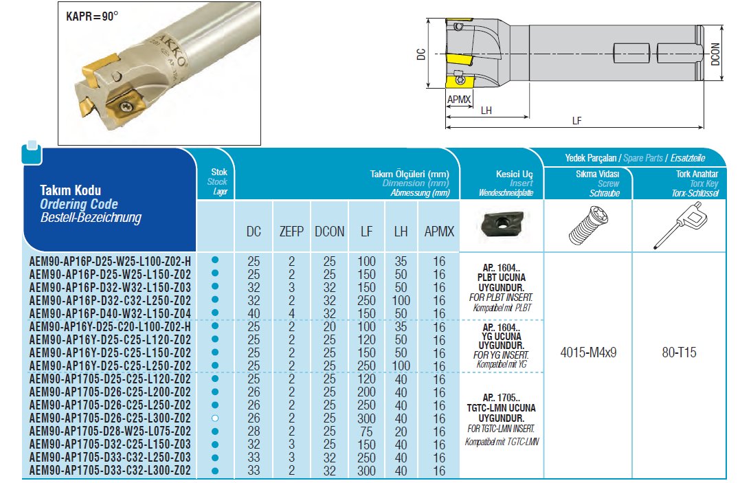 Stopková fréza čelní AEM90-AP1705-D32-C25-L150-Z03