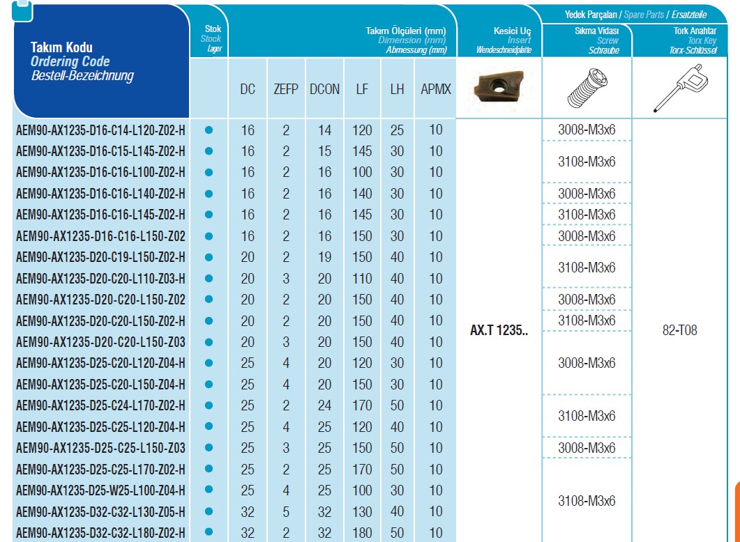 Stopková fréza čelní AEM90-AX1235-D16-C16-L145-Z02-H