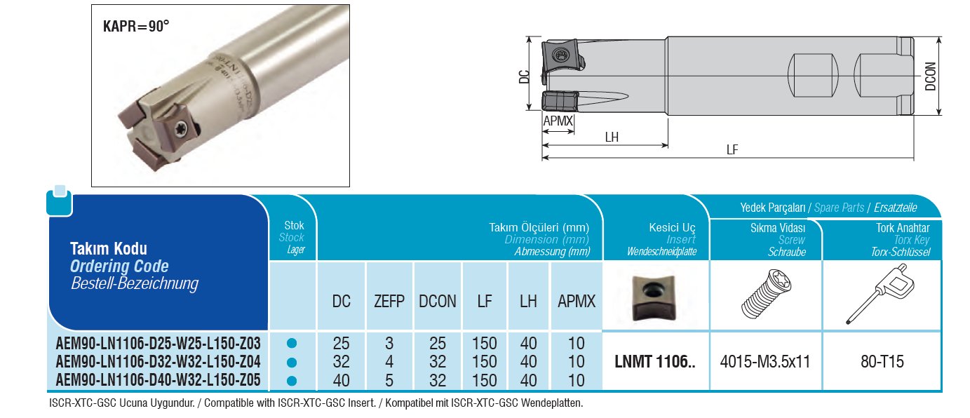 Stopková fréza čelní AEM90-LN1106-D25-W25-L150-Z03