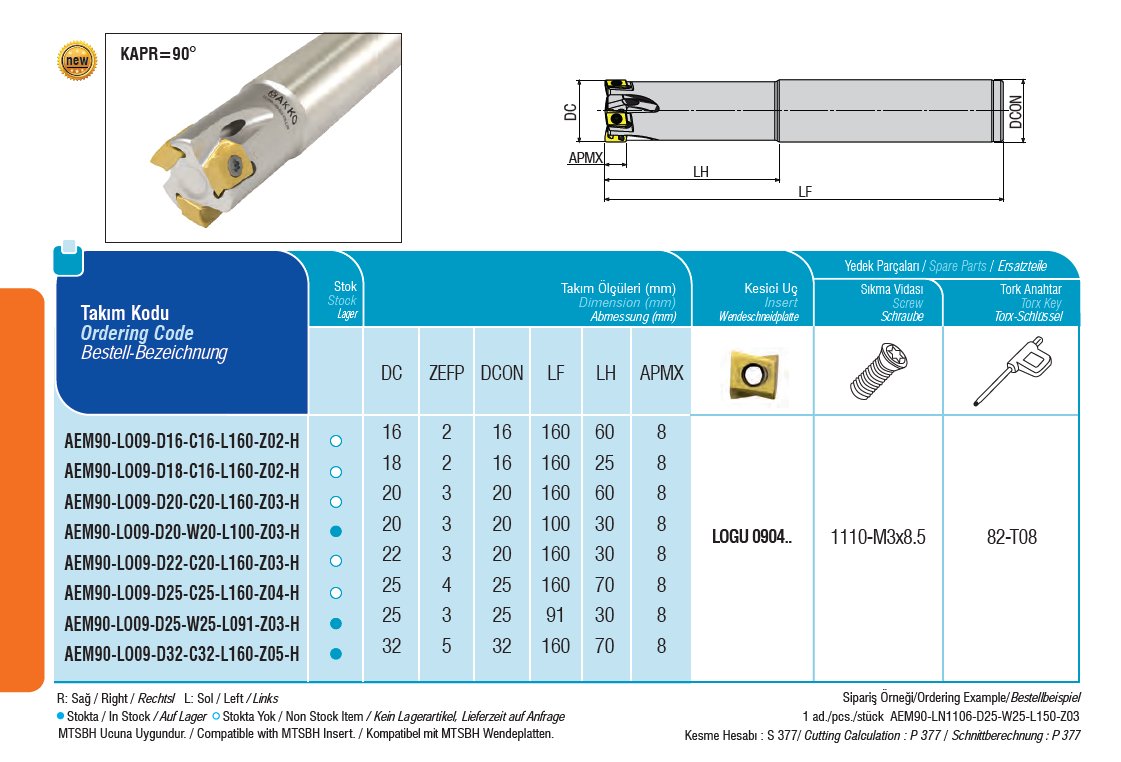 Stopková fréza čelní AEM90-LO09-D25-C25-L160-Z04-H