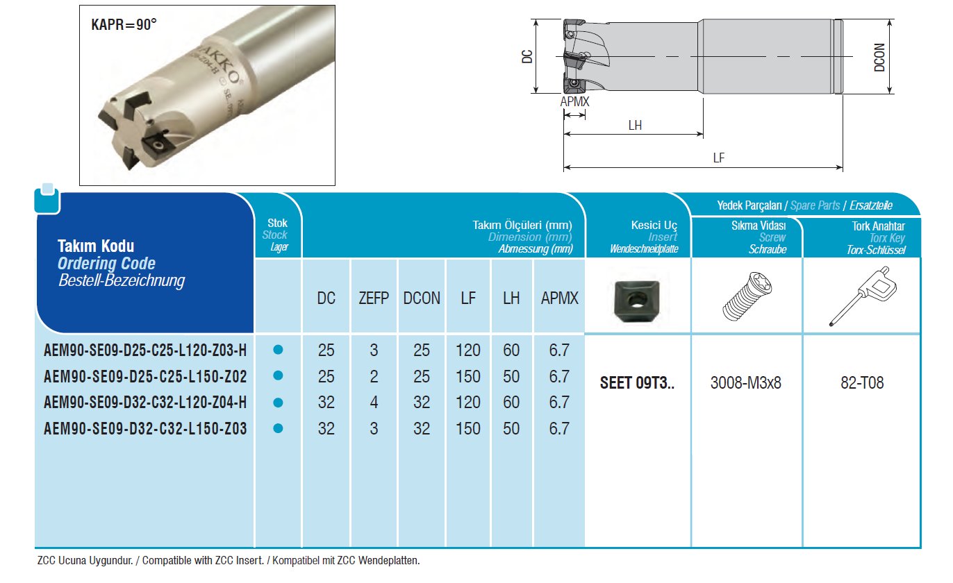 Fréza je určena pro VBD výrobce ZCC typ SEET 09T3..