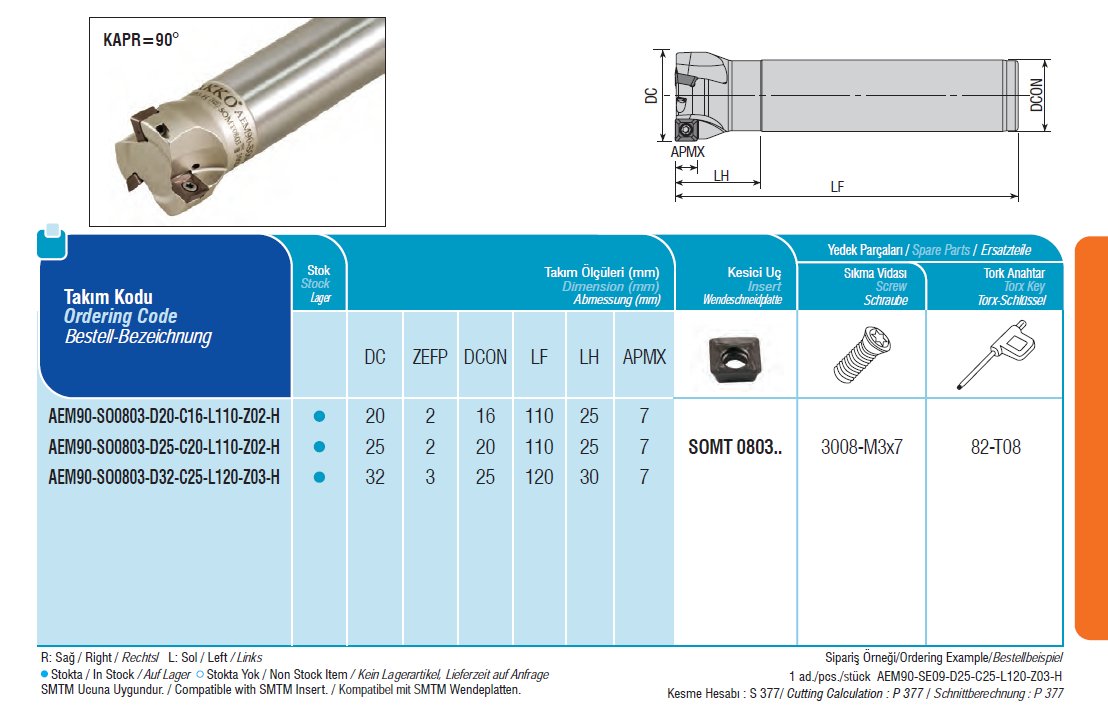 Stopková fréza čelní AEM90-SO0803-D32-C25-L120-Z03-H