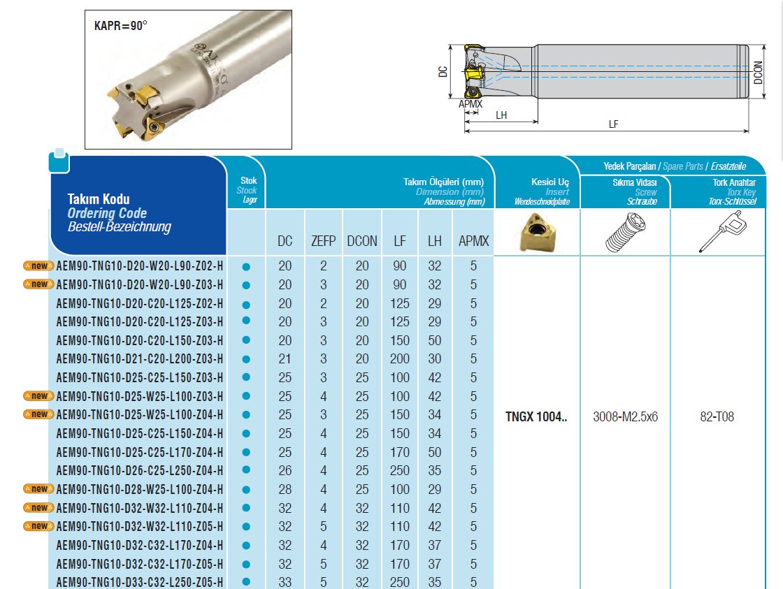Stopková fréza čelní AEM90-TNG10-D21-C20-L200-Z03-H