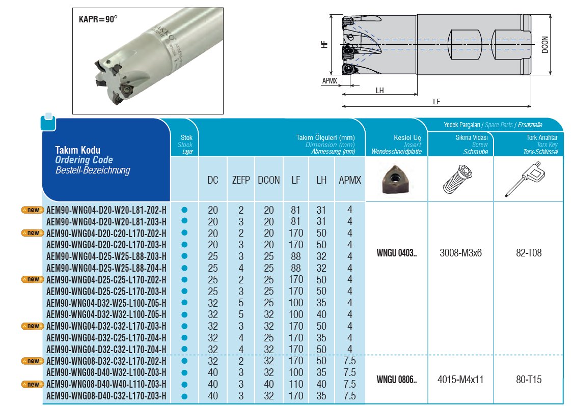 Stopková fréza čelní AEM90-WNG04-D20-W20-L81-Z03-H