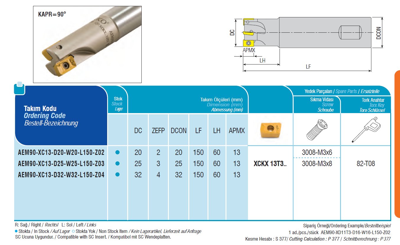 Stopková fréza čelní AEM90-XC13-D25-W25-L150-Z03