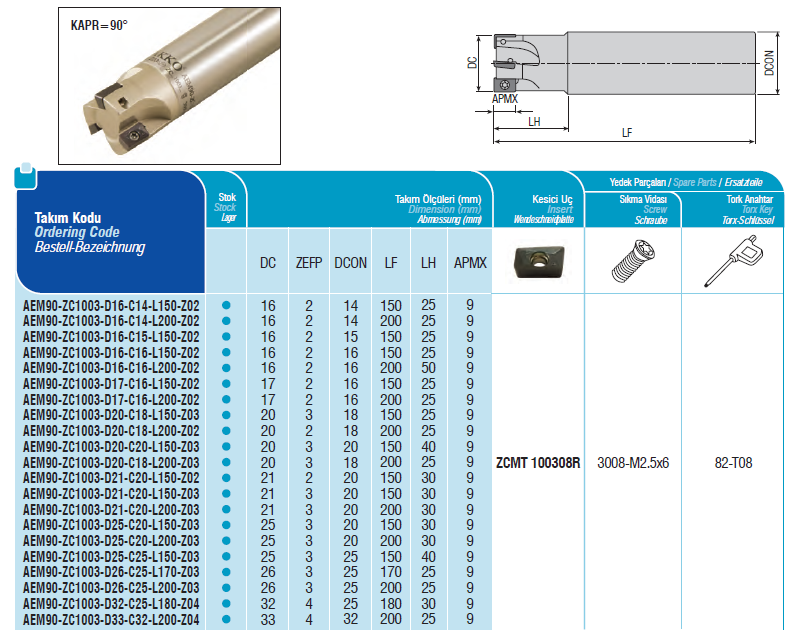 Stopková fréza čelní AEM90-ZC1003-D16-C16-L150-Z02