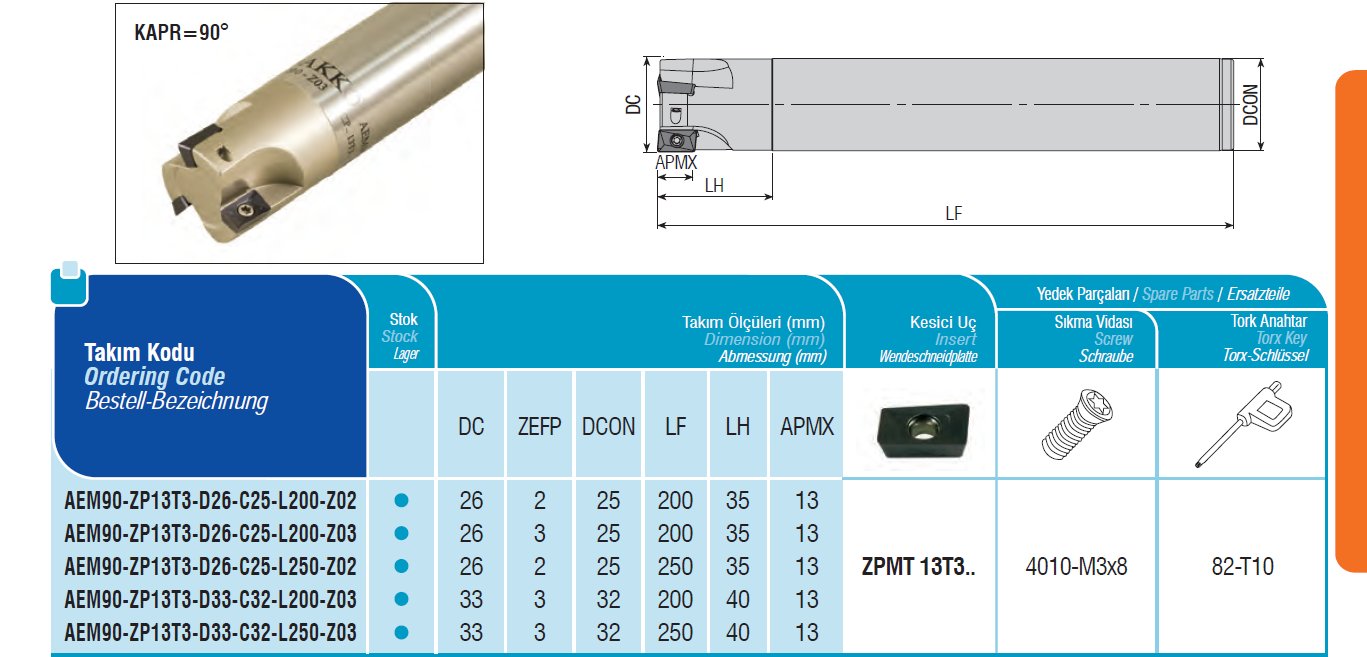 Stopková fréza čelní AEM90-ZP13T3-D33-C32-L200-Z03
