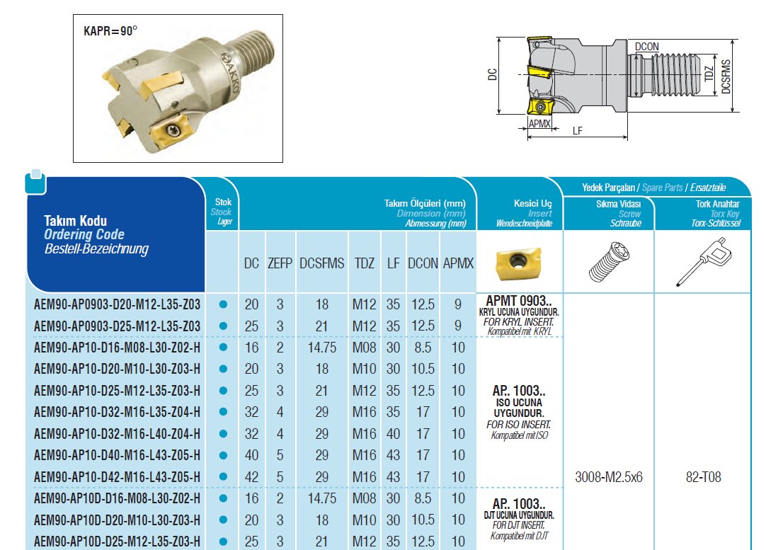 Stopková fréza čelní se závitem AEM90-AP10-D32-M16-L40-Z04-H