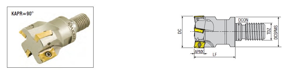 Stopková fréza čelní se závitem AEM90-AP10D-D25-M12-L35-Z03-H