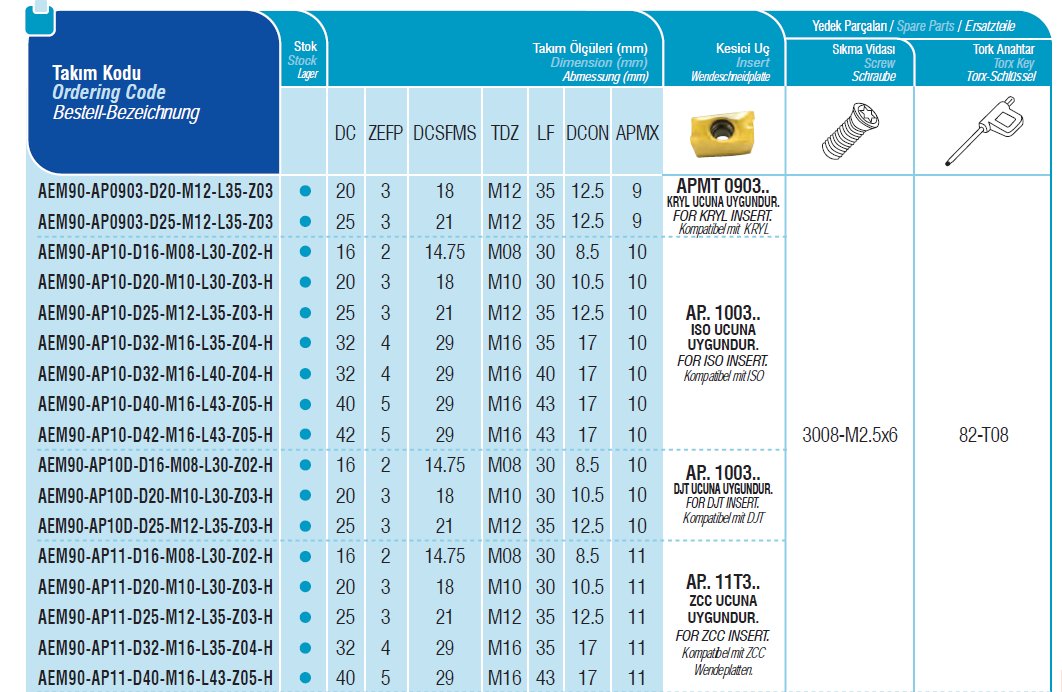 Stopková fréza čelní se závitem AEM90-AP11-D25-M12-L35-Z03-H
