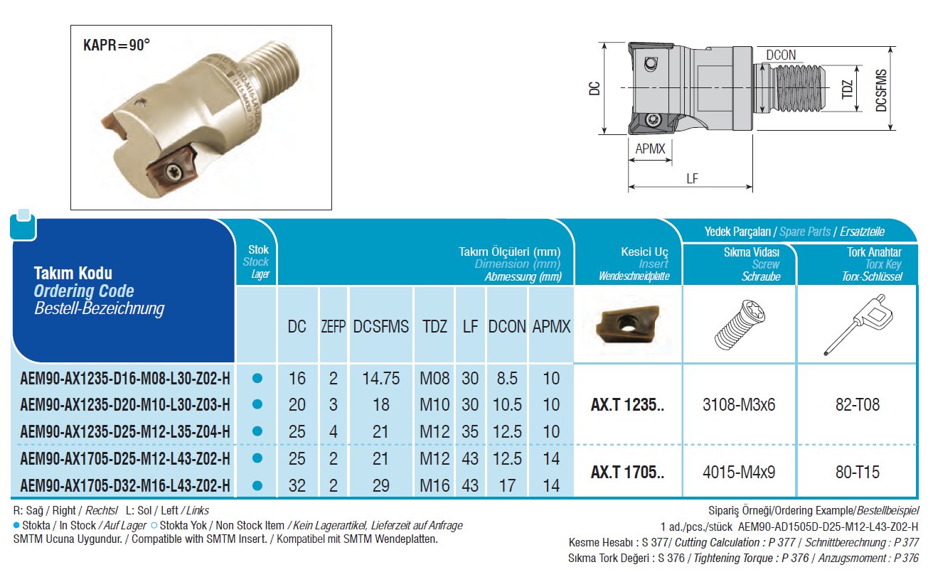 Stopková fréza čelní se závitem AEM90-AX1705-D25-M12-L43-Z02-H