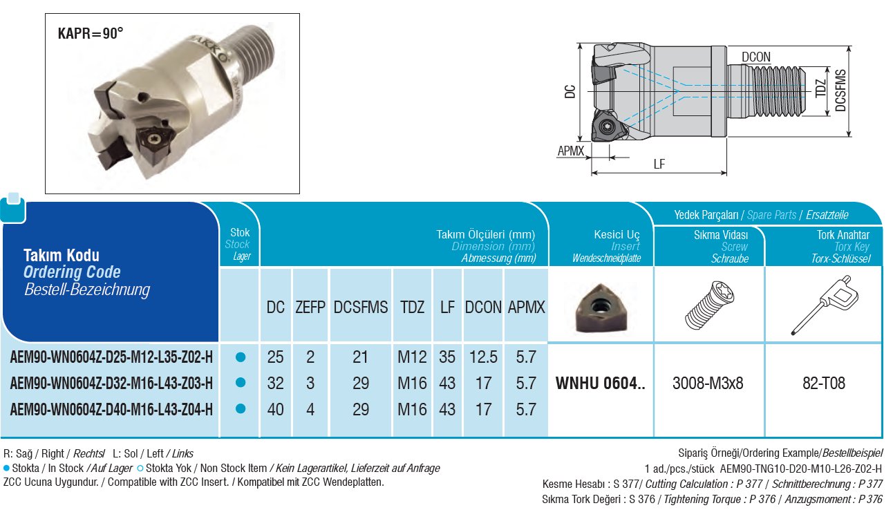 Stopková fréza čelní se závitem AEM90-WN0604Z-D40-M16-L43-Z04-H