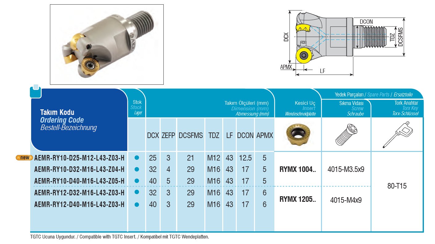 Stopková fréza kopírovací se závitem AEMR-RY10-D32-M16-L43-Z04-H