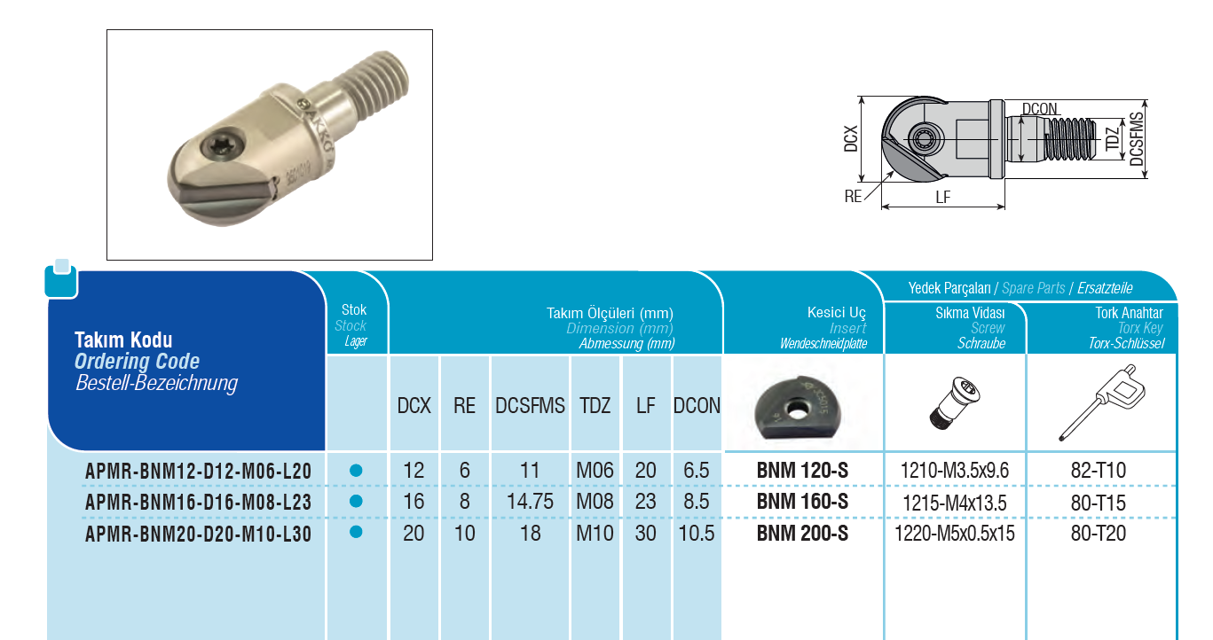 Stopková fréza kulová kopírovací se závitem APMR-BNM20-D20-M10-L30