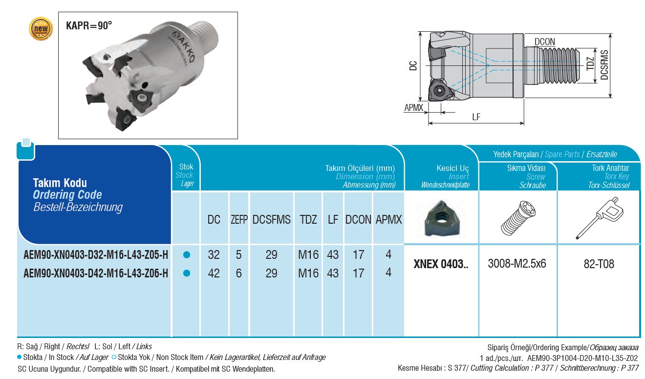 Stopková fréza se závitem AEM90-XN0403-D42-M16-L43-Z06-H