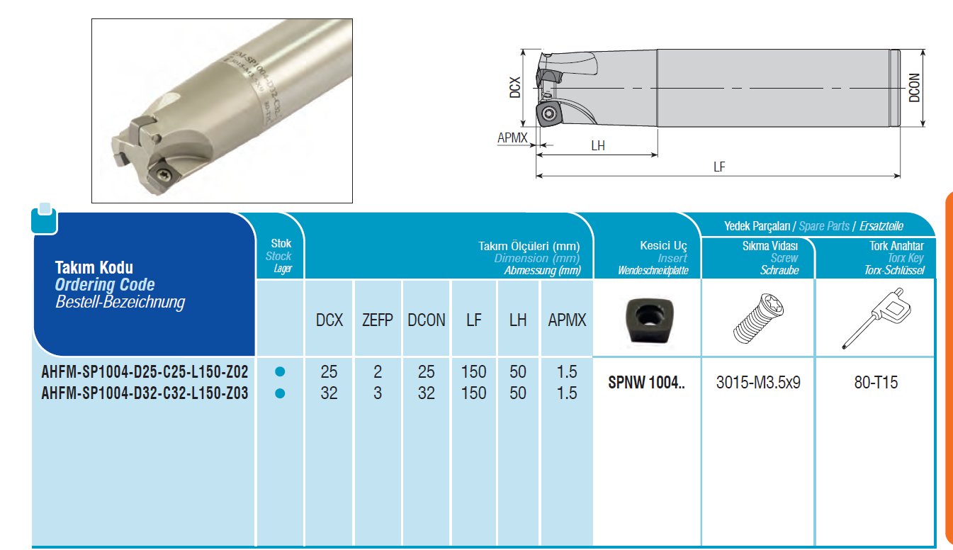 Stopková fréza vysokoposuvová AHFM-SP1004-D32-C32-L150-Z03