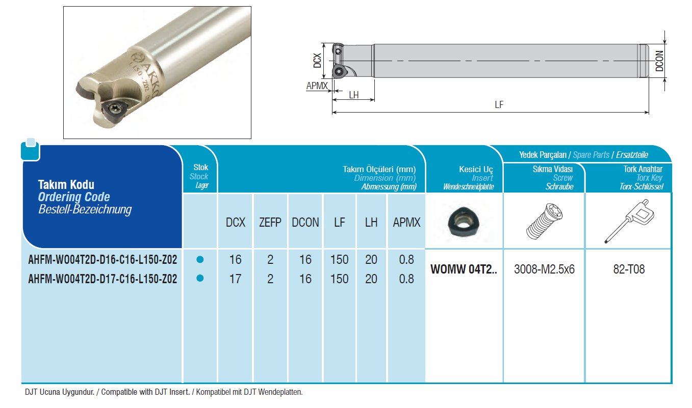 Stopková fréza vysokoposuvová AHFM-WO04T2D-D17-C16-L150-Z02