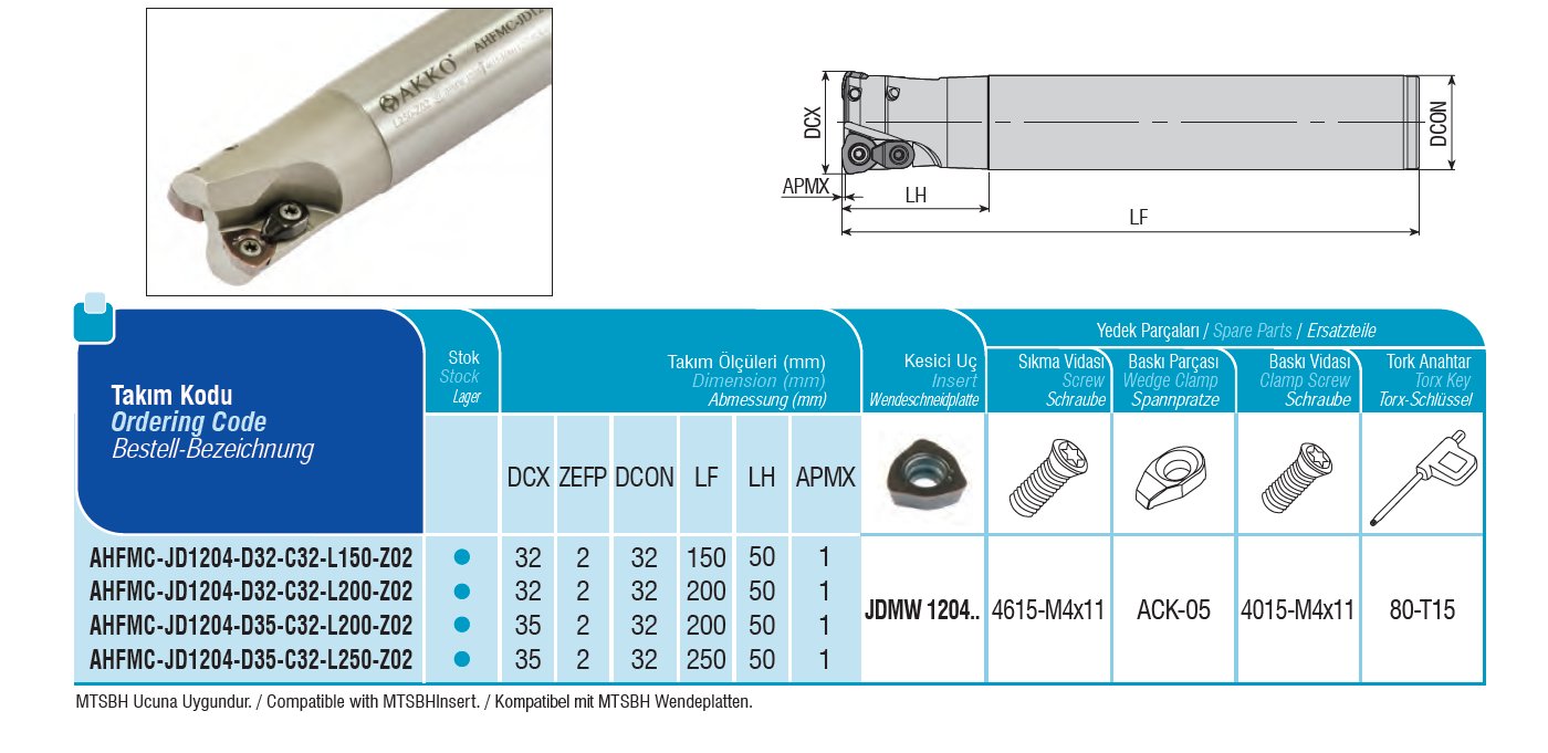 Stopková fréza vysokoposuvová AHFMC-JD1204-D32-C32-L200-Z02
