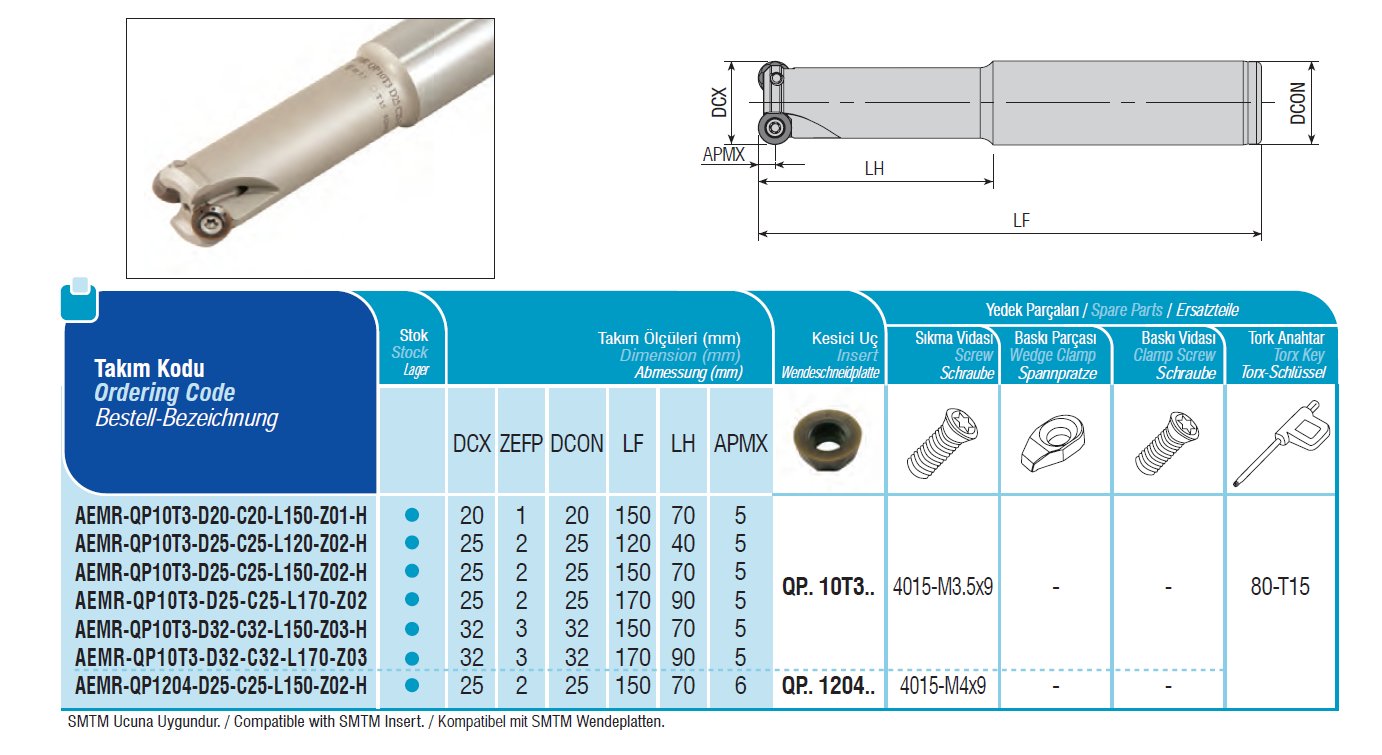 Stopková kopírovací fréza čelní AEMR-QP1204-D25-C25-L150-Z02-H