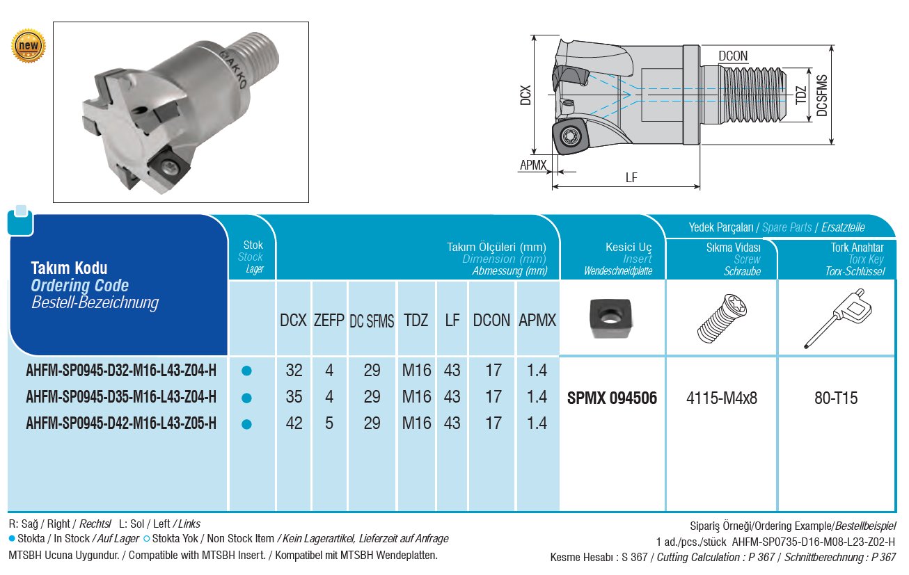 Stopková rychloposuvová fréza se závitem AHFM-SD1205-D42-M16-L43-Z03-H
