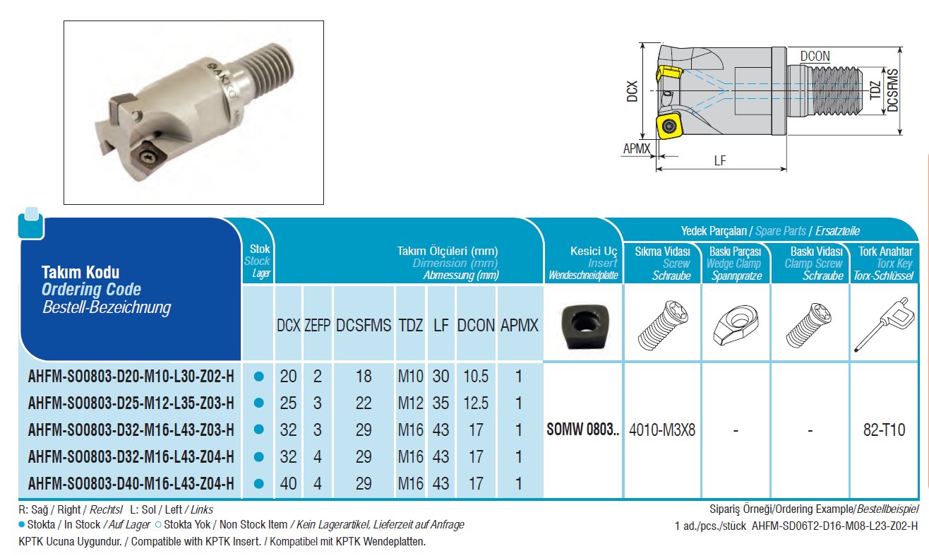 Stopková rychloposuvová fréza se závitem AHFM-SO0803-D32-M16-L43-Z03-H