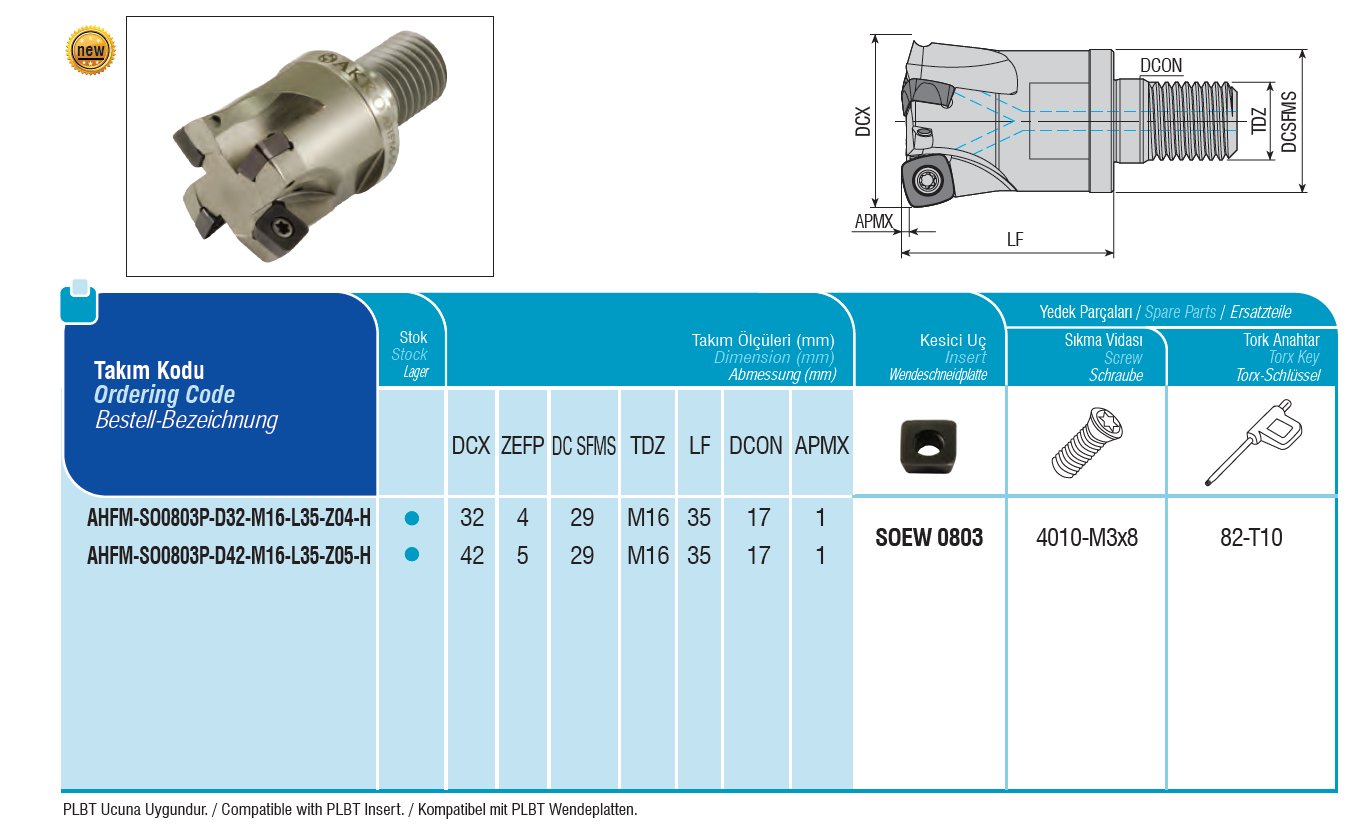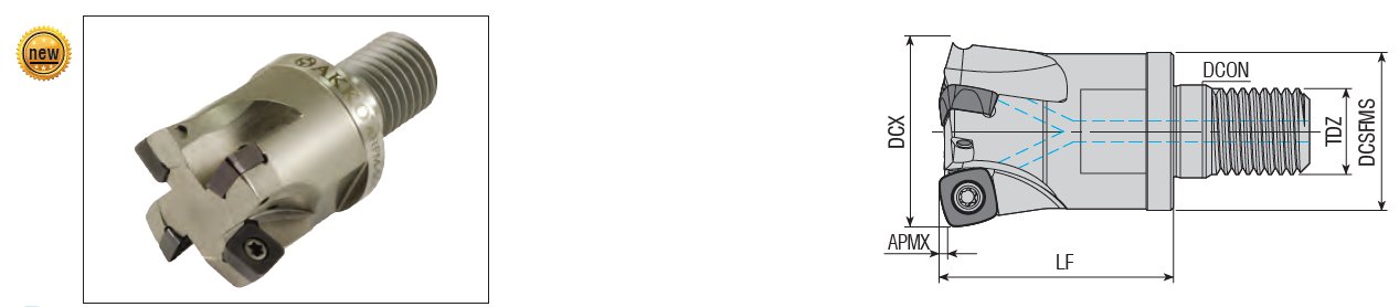Stopková rychloposuvová fréza se závitem AHFM-SO0803P-D42-M16-L35-Z05-H