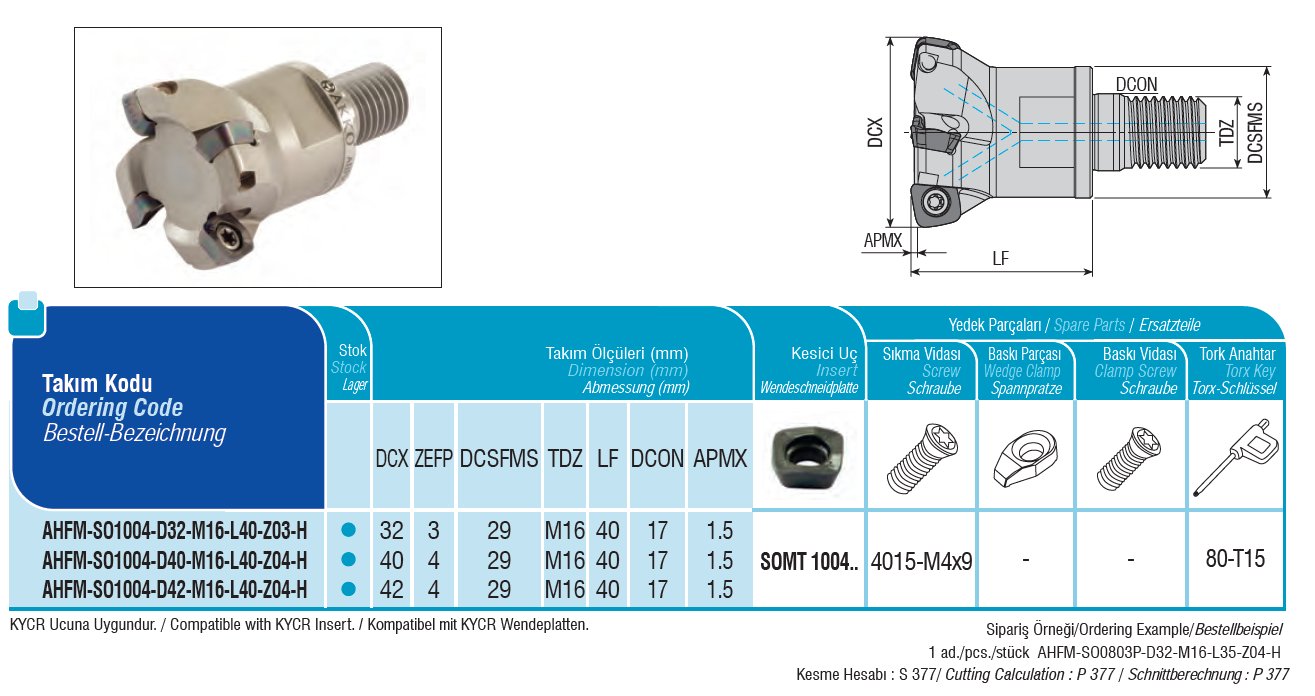 Stopková rychloposuvová fréza se závitem AHFM-SO1004-D42-M16-L40-Z04-H
