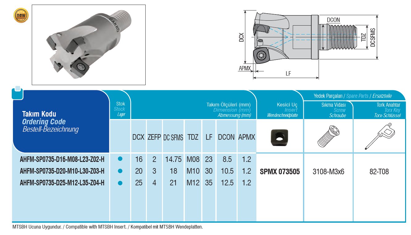 Stopková rychloposuvová fréza se závitem AHFM-SP0735-D16-M08-L23-Z02-H