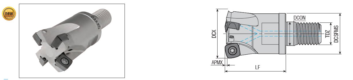 Stopková rychloposuvová fréza se závitem AHFM-SP0735-D20-M10-L30-Z03-H