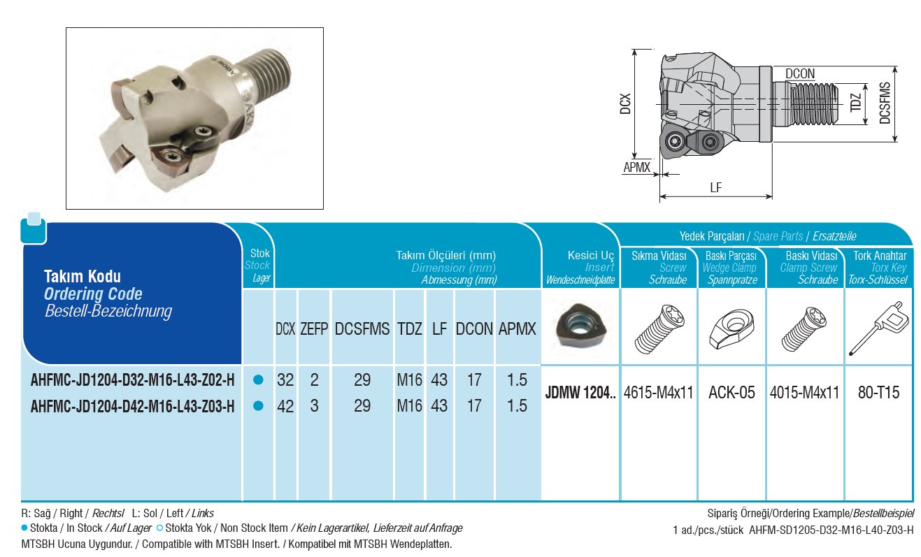 Stopková rychloposuvová fréza se závitem AHFMC-JD1204-D42-M16-L43-Z03-H