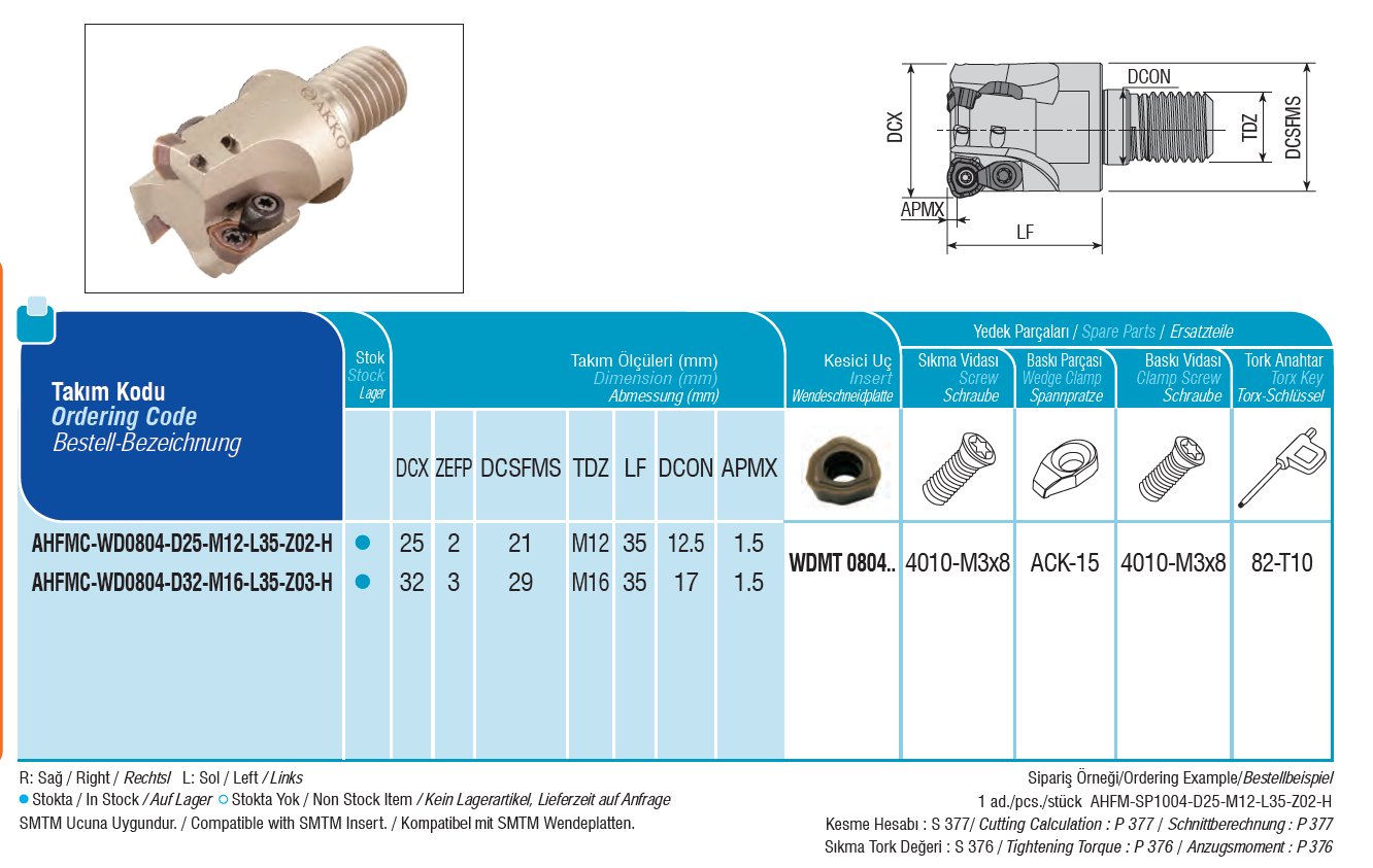 Stopková rychloposuvová fréza se závitem AHFMC-WD0804-D32-M16-L35-Z03-H