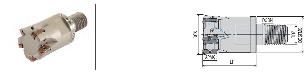 Stopková vysokoposuvová fréza se závitem AHFM-LN0303-D32-M16-L43-Z05-H