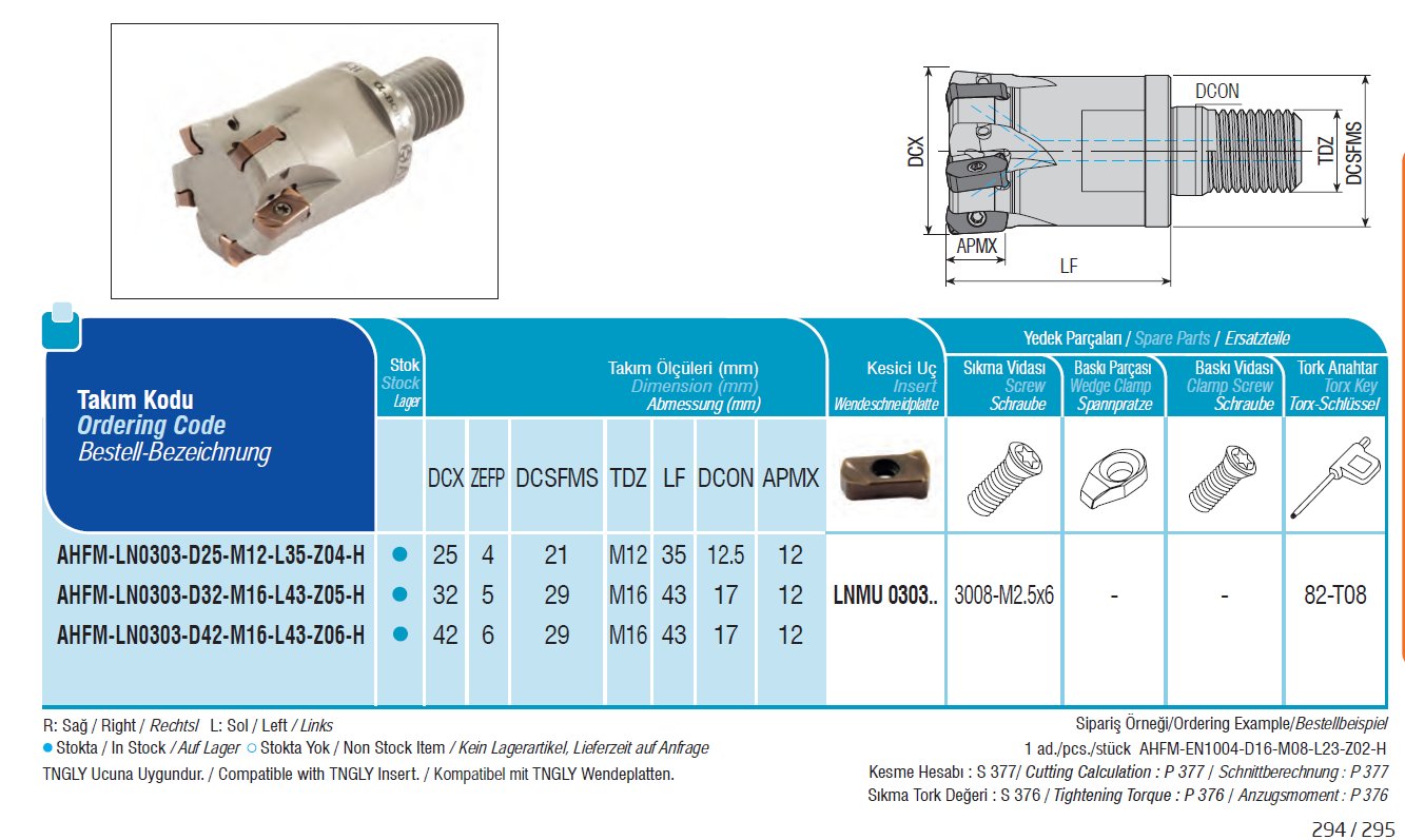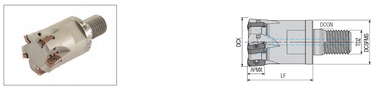 Stopková vysokoposuvová fréza se závitem AHFM-LN0303-D42-M16-L43-Z06-H